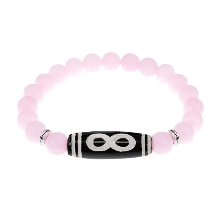 Браслет с бусиной Дзи Бесконечность и нат.камнем Розовый кварц BSDS8-07-15