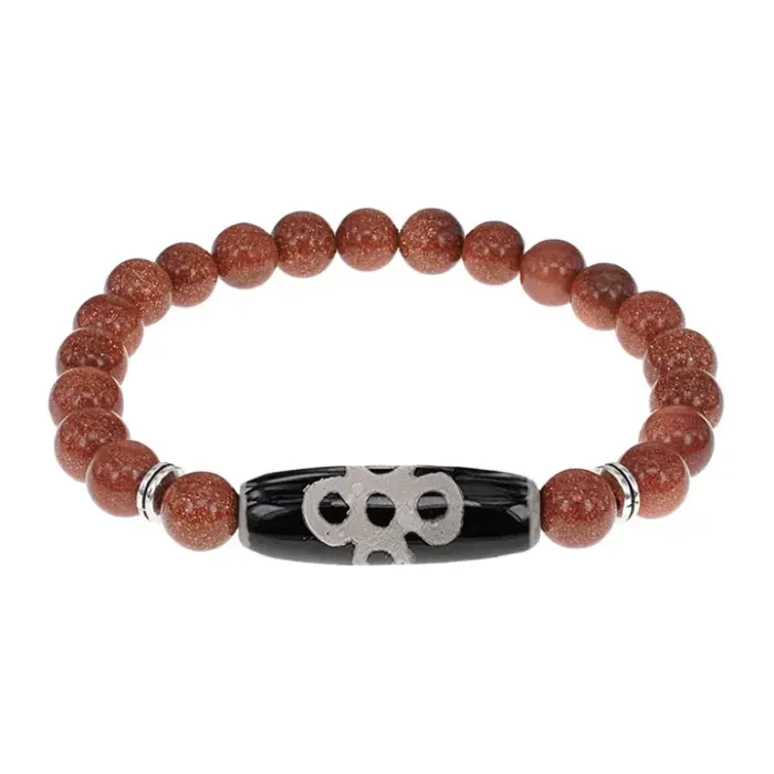 Браслет с бусиной Дзи Гаруда и синт.камнем Коричневый авантюрин