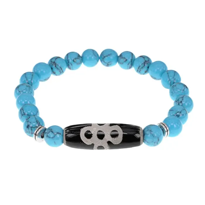 Браслет с бусиной Дзи Гаруда и синт.камнем Бирюза BSDS8-08-05