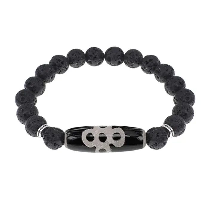 Браслет с бусиной Дзи Гаруда и нат.камнем Лава BSDS8-08-09