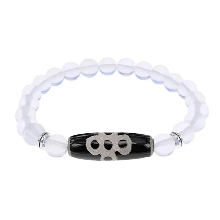 Браслет с бусиной Дзи Гаруда и синт.камнем Лунный камень BSDS8-08-11