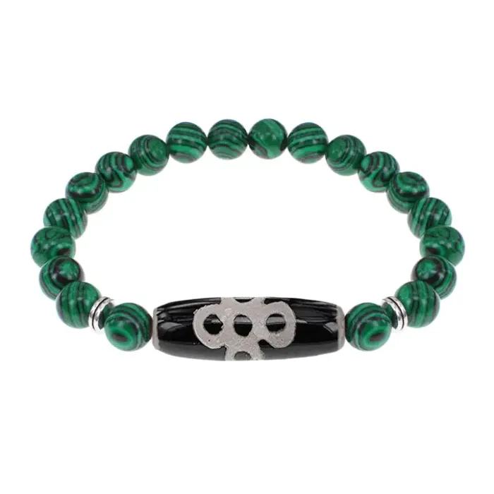 Браслет с бусиной Дзи Гаруда и синтетическим камнем Малахит BSDS8-08-12
