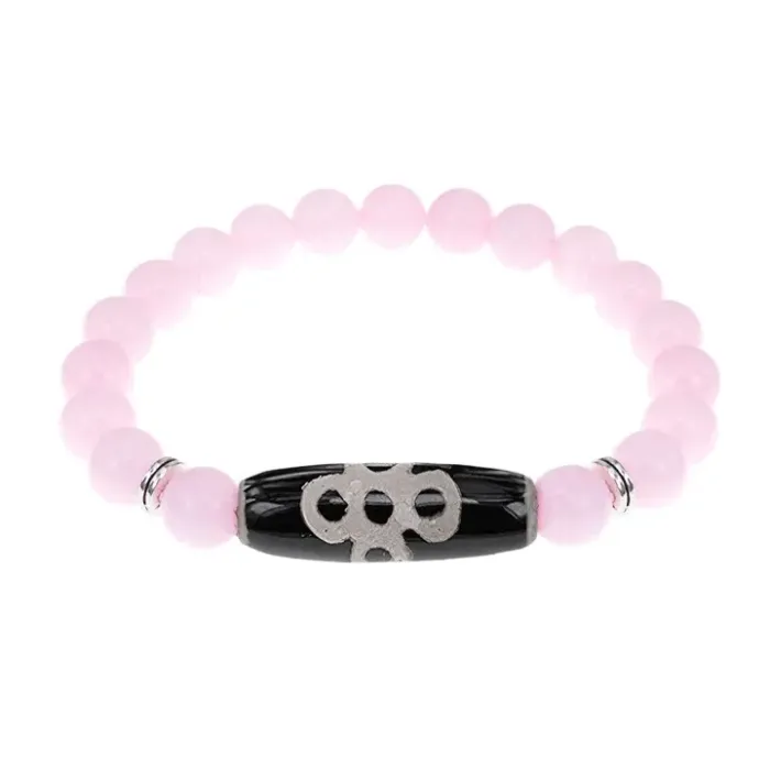 Браслет с бусиной Дзи Гаруда и нат.камнем Розовый кварц BSDS8-08-15