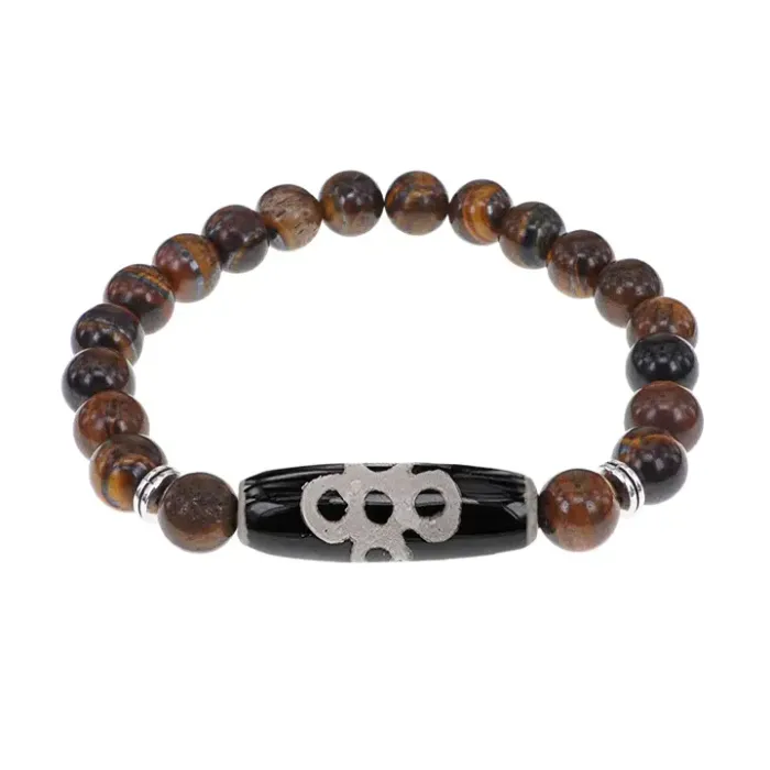 Браслет с бусиной Дзи Гаруда и нат.камнем Тигровый глаз BSDS8-08-19