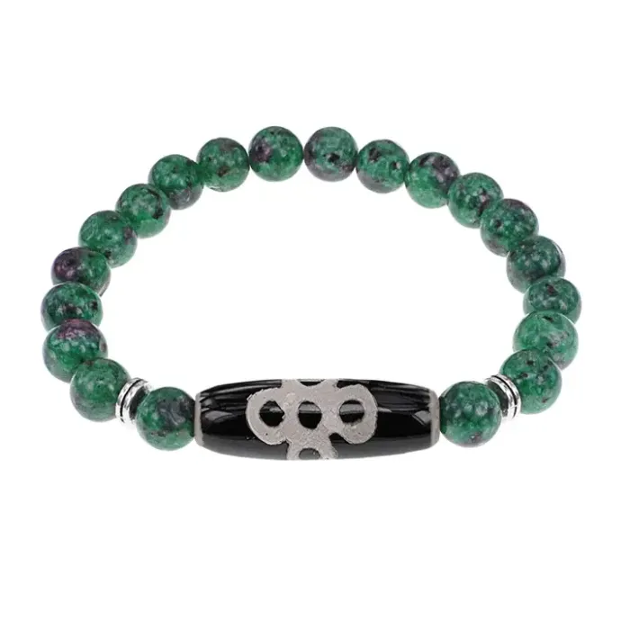 Браслет с бусиной Дзи Гаруда и синт. камнем Цоизит BSDS8-08-22