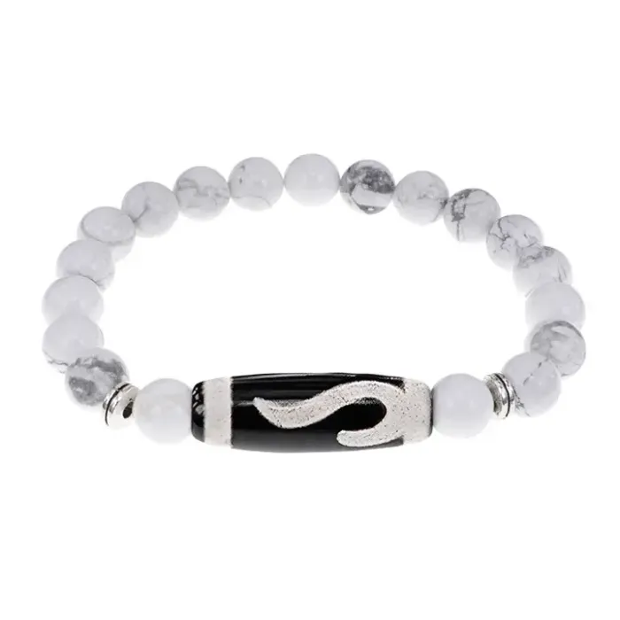 Стрейч-браслет из натурального камня кахолонг с тибетской бусиной Дзи из агата.