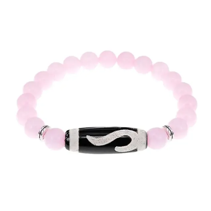 Браслет с бусиной Дзи Золотой ключ и нат.камнем Розовый кварц BSDS8-09-15