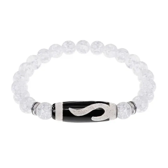 Стрейч-браслет из синтетического камня с тибетской бусиной Дзи из натурального агата.