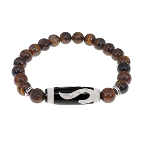 Стрейч-браслет из натурального камня с тибетской бусиной Дзи, выполненной из агата.