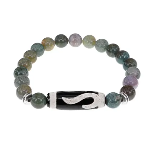 Стрейч-браслет из натурального камня яшмы с тибетской бусиной Дзи из агата.
