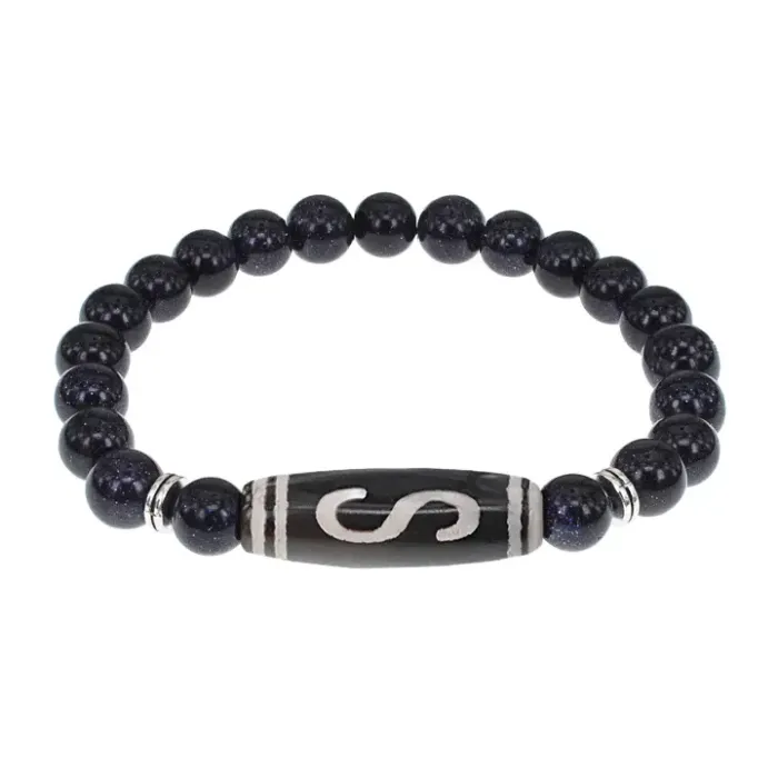 Браслет с бусиной Дзи Денежный крючок и синт.камнем Синий авантюрин BSDS8-10-02