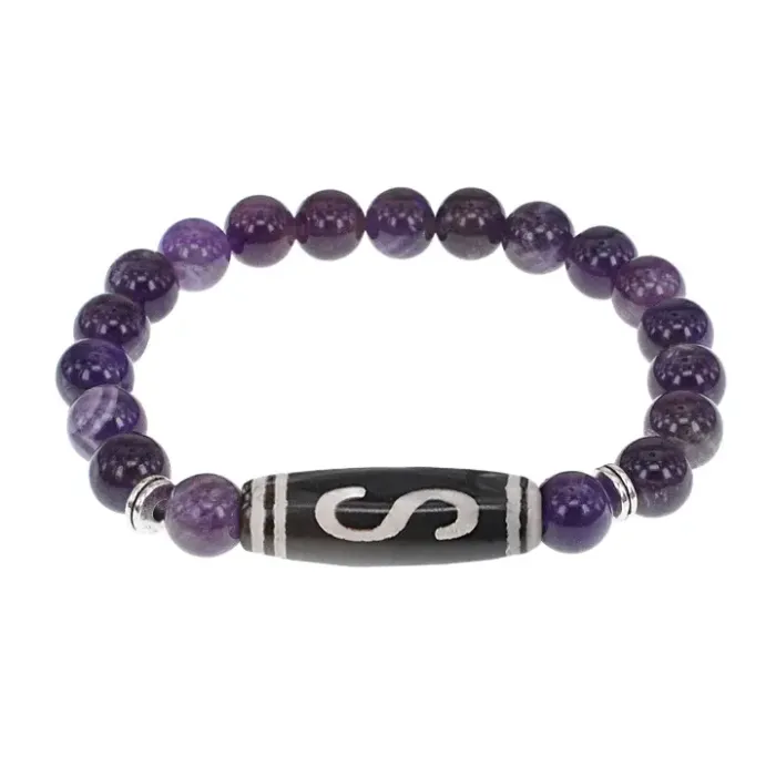 Браслет с бусиной Дзи Денежный крючок и нат.камнем Аметист BSDS8-10-03