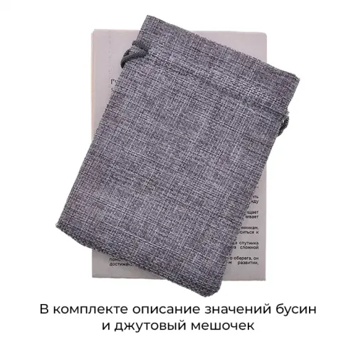 Размеры и комплектация: Внутренний диаметр около 5,2 см (диапазон 5,0 - 5,5 см), диаметр бусин — 8 мм. Комплектуется прозрачным пакетом с еврослотом, джутовым мешочком и буклетом.