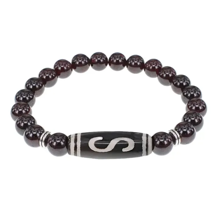 Браслет с бусиной Дзи Денежный крючок и нат.камнем Гранат BSDS8-10-06