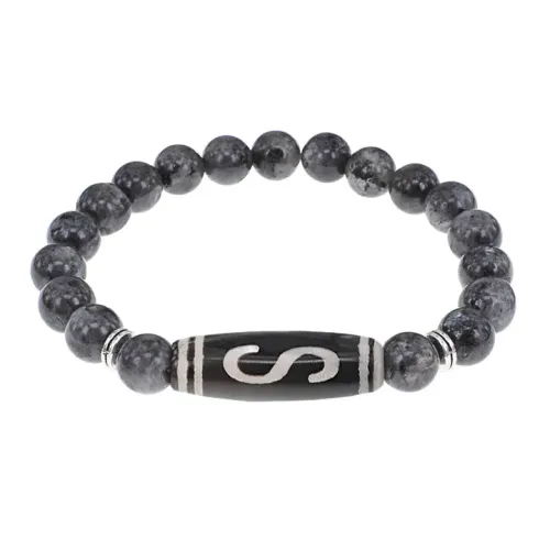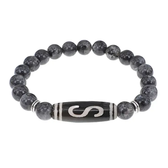 Стрейч-браслет из натурального камня лабрадор с тибетской бусиной Дзи из агата.
