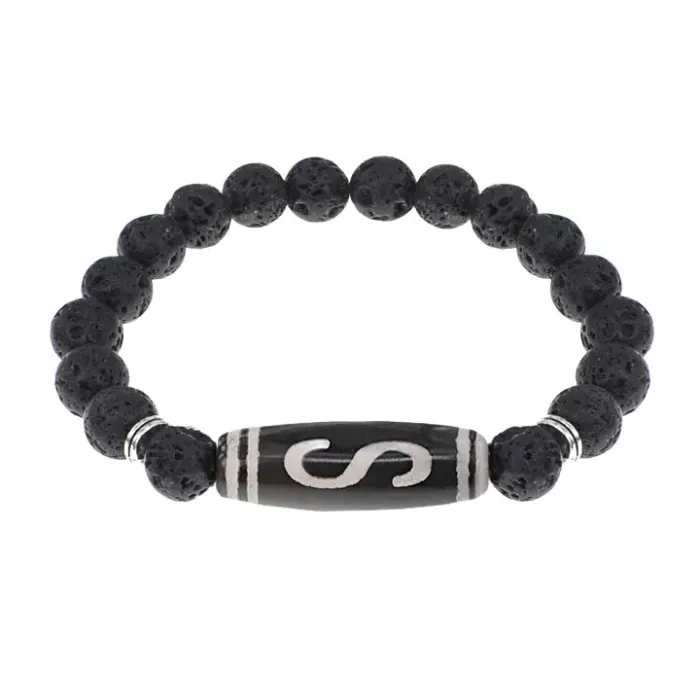 Браслет с бусиной Дзи Денежный крючок и нат.камнем Лава BSDS8-10-09