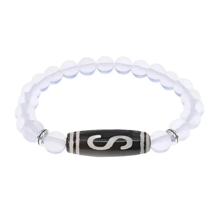 Стрейч-браслет из синтетического камня с тибетской бусиной Дзи из агата.