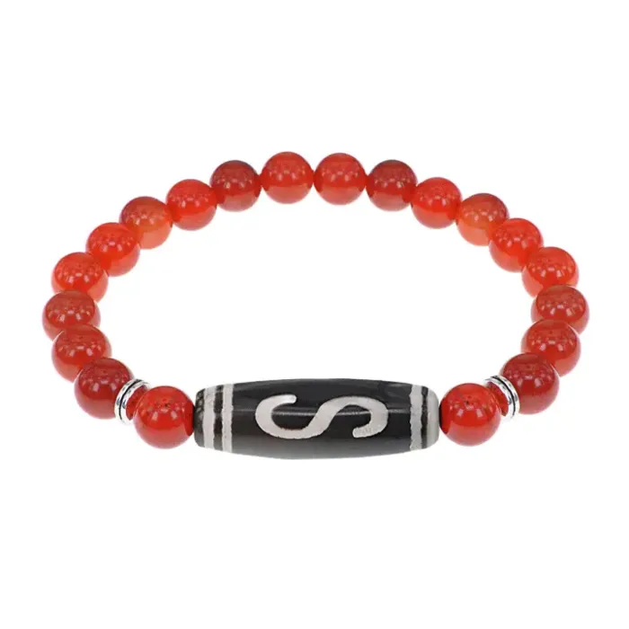 Стрейч-браслет из натурального сердолика с тибетской бусиной Дзи из агата.