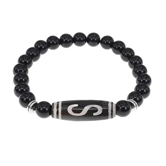 Браслет с бусиной Дзи Денежный крючок и нат.камнем Черный агат BSDS8-10-23