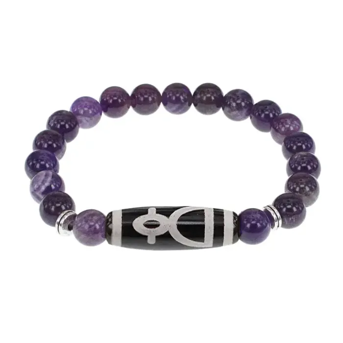 Браслет с бусиной Дзи Кубера и нат.камнем Аметист BSDS8-11-03
