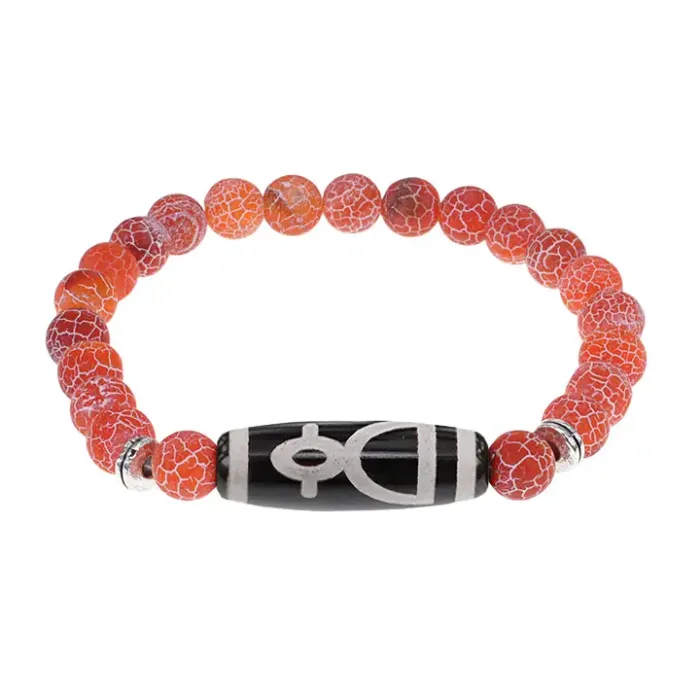 Браслет с бусиной Дзи Кубера и нат.камнем Африканский агат BSDS8-11-04