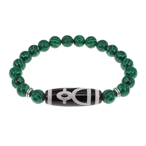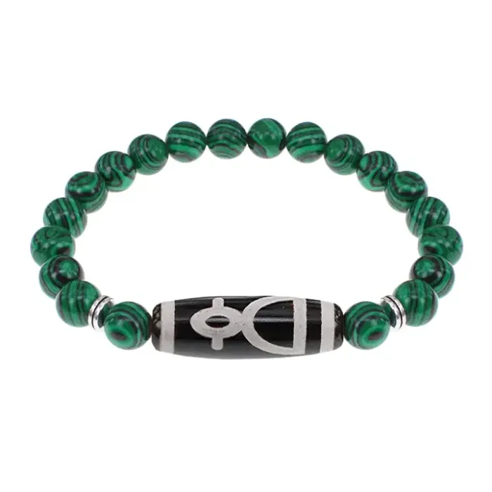Браслет с бусиной Дзи Кубера и синт.камнем Малахит BSDS8-11-12