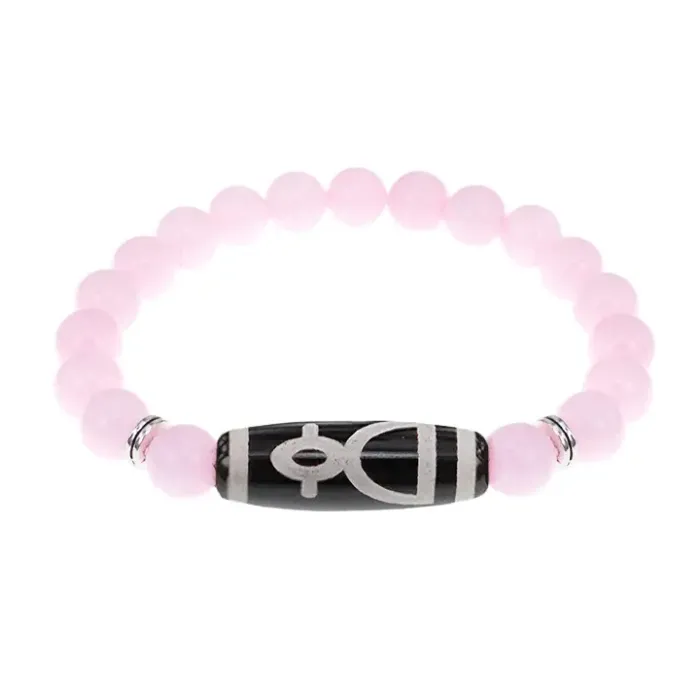 Браслет с бусиной Дзи Кубера и нат.камнем Розовый кварц BSDS8-11-15