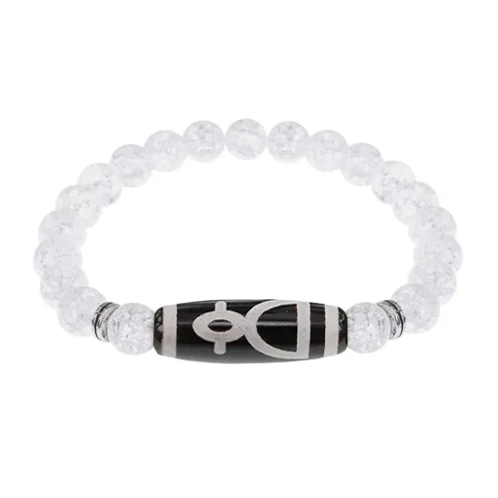 Стрейч-браслет из синтетического камня с тибетской бусиной Дзи из натурального агата.