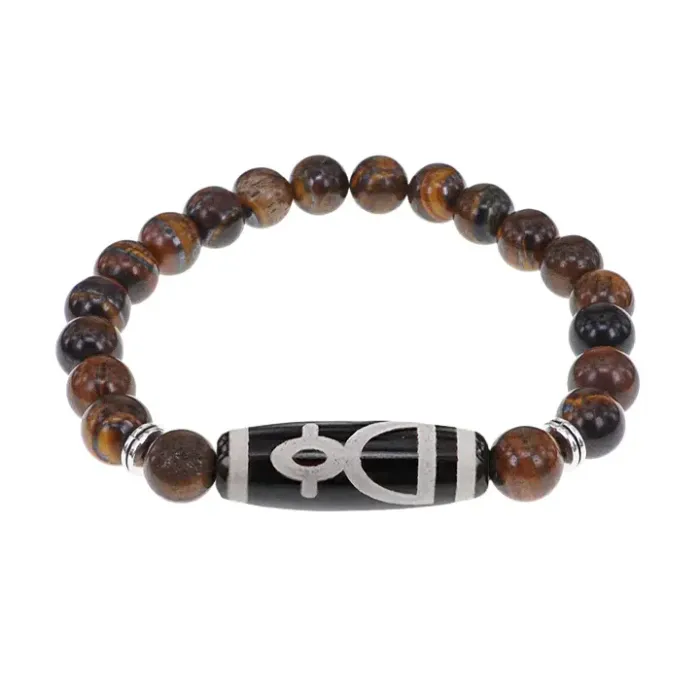 Браслет с бусиной Дзи Кубера и нат. камнем Тигровый глаз BSDS8-11-19