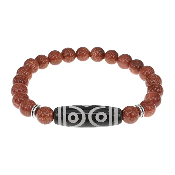 Браслет с 6-глазой бусиной Дзи и синт. камнем Коричневый авантюрин BSDS8-12-01