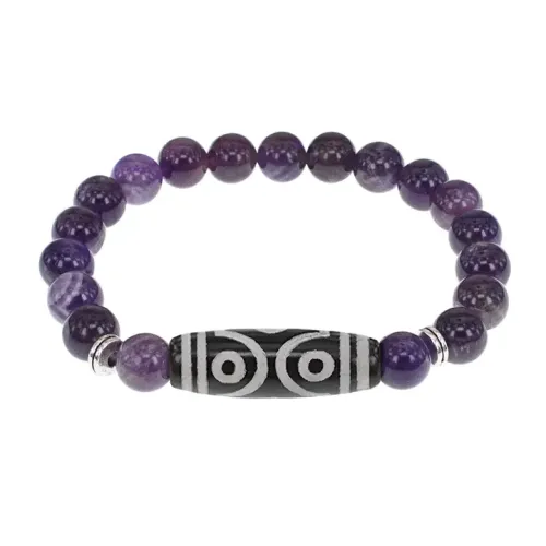 Браслет с 6-глазой бусиной Дзи и нат.камнем Аметист BSDS8-12-03
