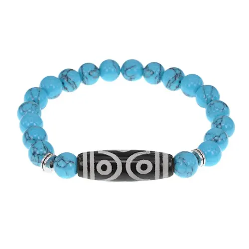 Браслет с 6-глазой бусиной Дзи и синт.камнем Бирюза BSDS8-12-05