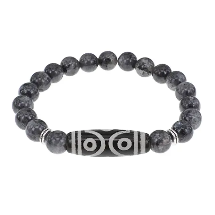 Стрейч-браслет из натурального камня лабрадор с тибетской бусиной Дзи из агата.