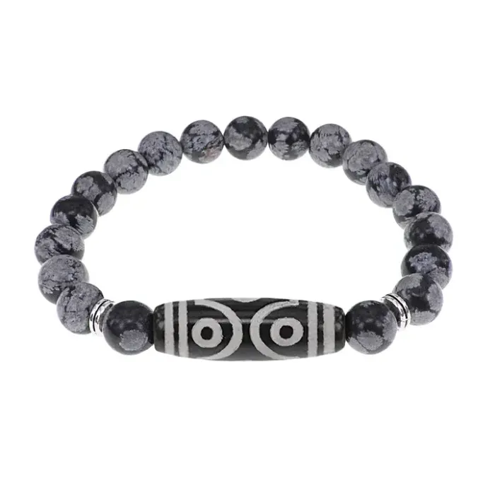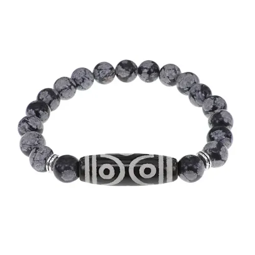 Браслет с 6-глазой бусиной Дзи и нат.камнем Снежный обсидиан BSDS8-12-14