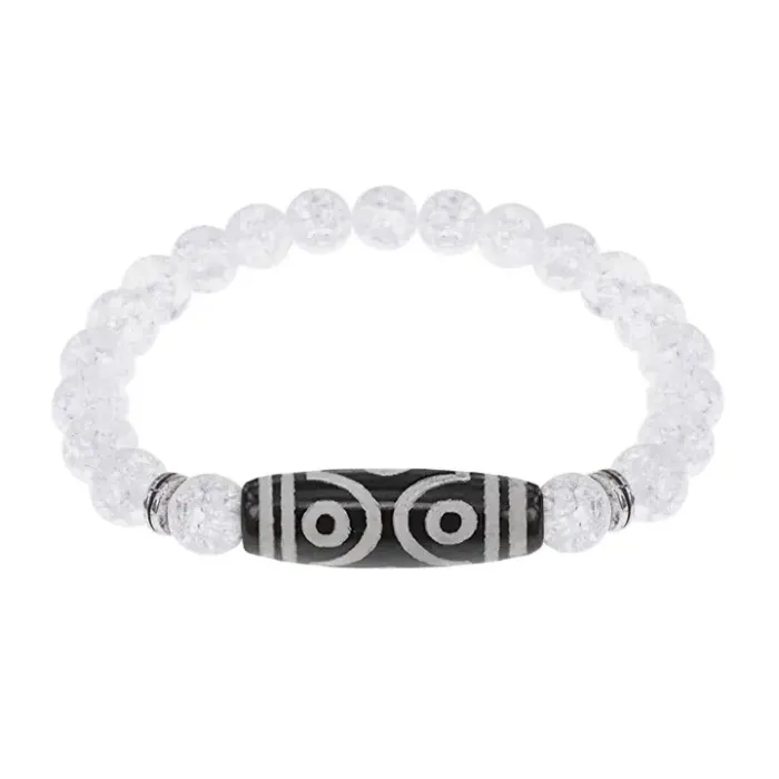 Стрейч-браслет из синтетического камня с тибетской бусиной Дзи из натурального агата.