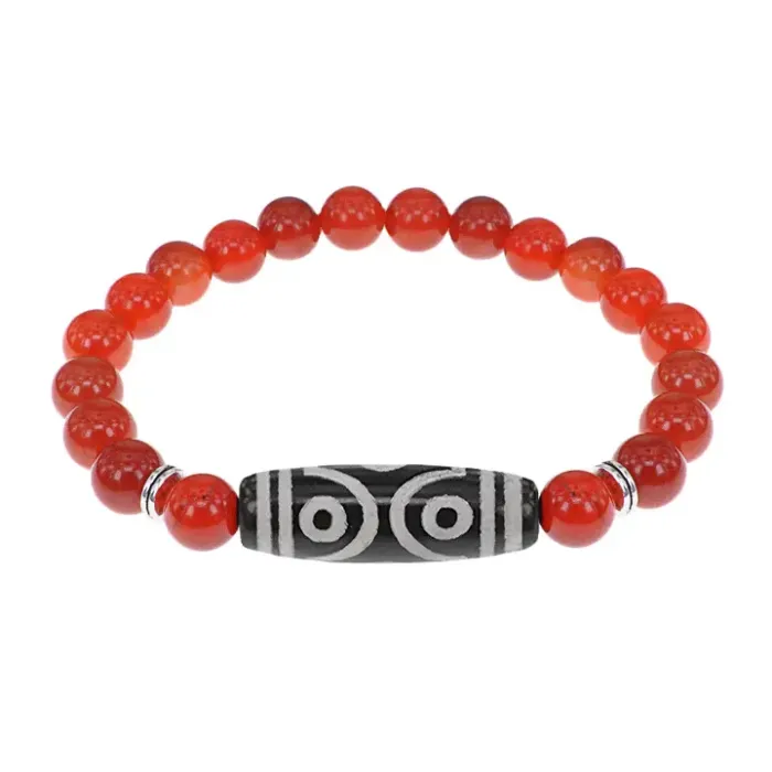 Стрейч-браслет из натурального камня сердолик с тибетской бусиной Дзи из агата.