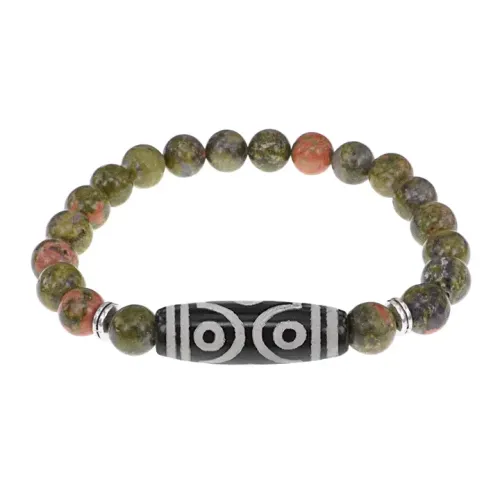 Браслет с 6-глазой бусиной Дзи и нат.камнем Унакит BSDS8-12-20