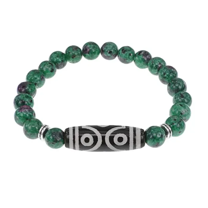 Браслет с 6-глазой бусиной Дзи и синт.камнем Цоизит BSDS8-12-22