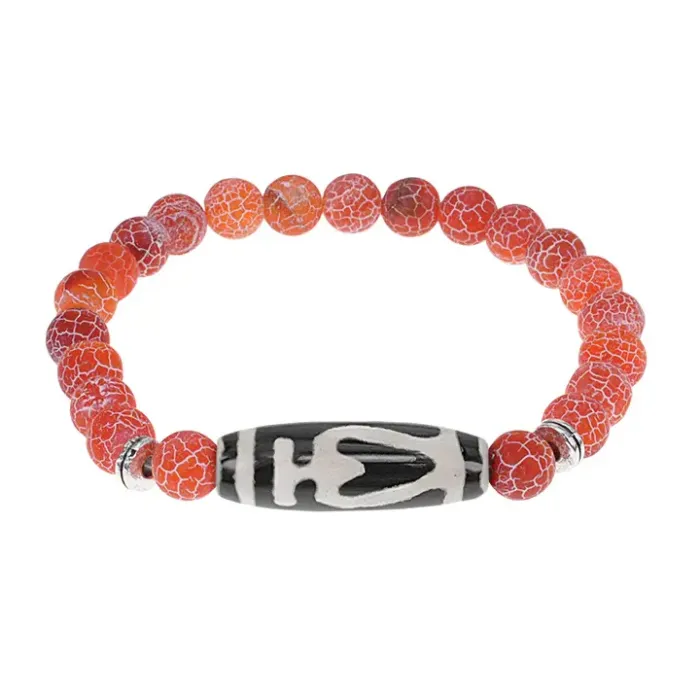Стрейч-браслет из натурального африканского агата с тибетской бусиной Дзи.