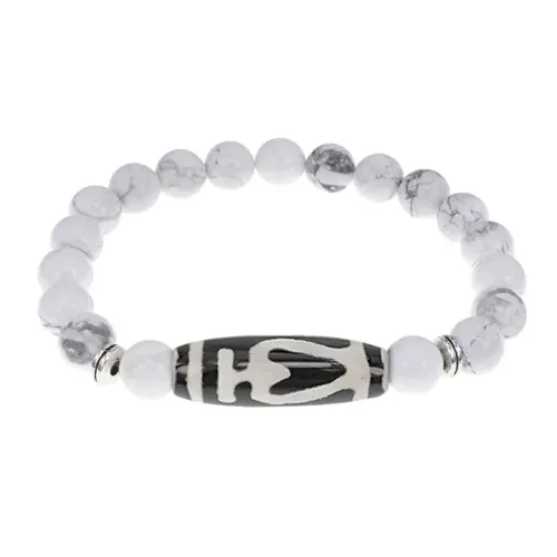 Стрейч-браслет из натурального камня кахолонг с тибетской бусиной Дзи из агата.