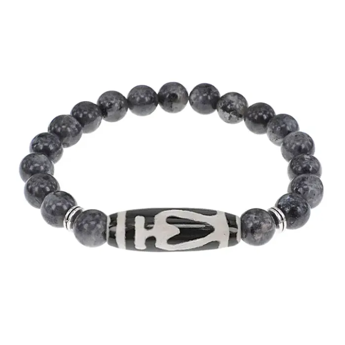 Браслет бусиной Дзи Бумпа и нат.камнем Лабрадор BSDS8-13-08