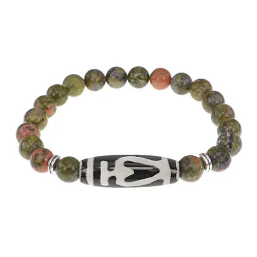 Браслет бусиной Дзи Бумпа и нат.камнем Унакит BSDS8-13-20