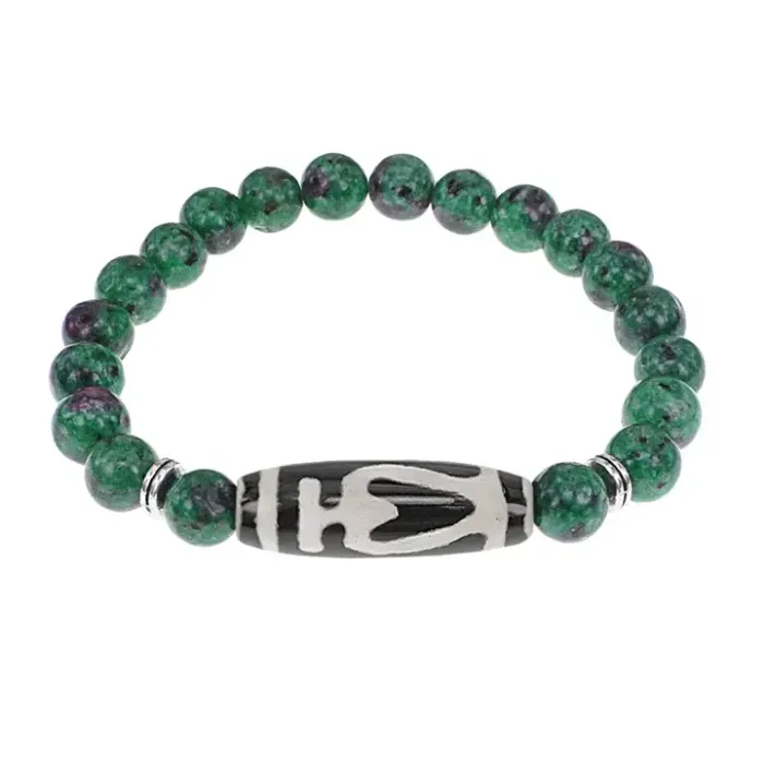 Стрейч-браслет из синтетического камня с тибетской бусиной Дзи из натурального агата.