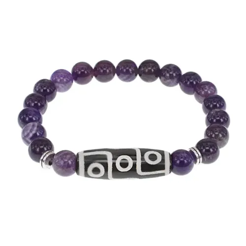 Стрейч-браслет из натурального камня аметист с тибетской бусиной Дзи из агата.