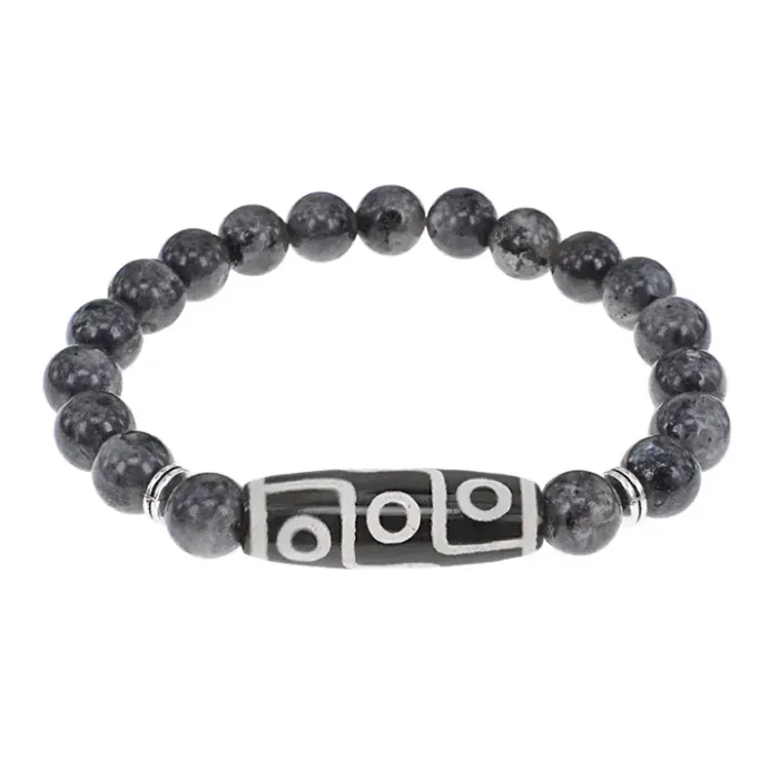 Браслет с 9-глазой бусиной Дзи и нат.камнем Лабрадор BSDS8-15-08