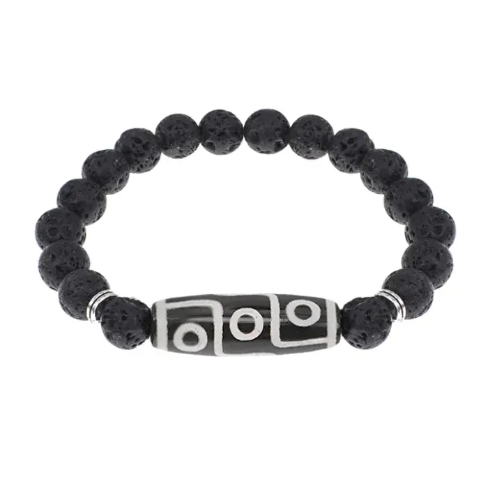 Стрейч-браслет из натурального камня лава с тибетской бусиной Дзи из агата.