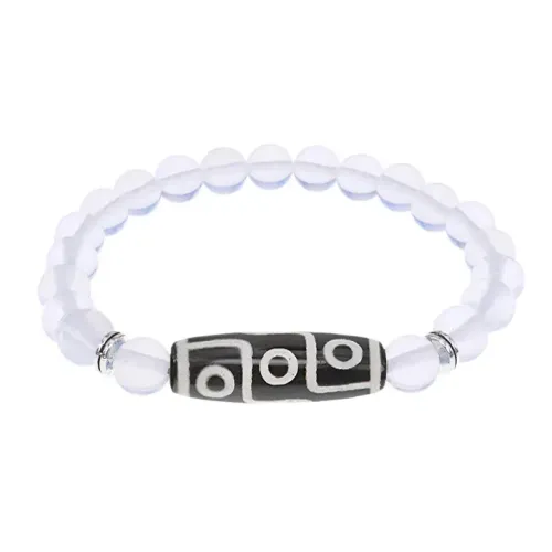 Браслет с 9-глазой бусиной Дзи и синт. камнем Лунный камень BSDS8-15-11