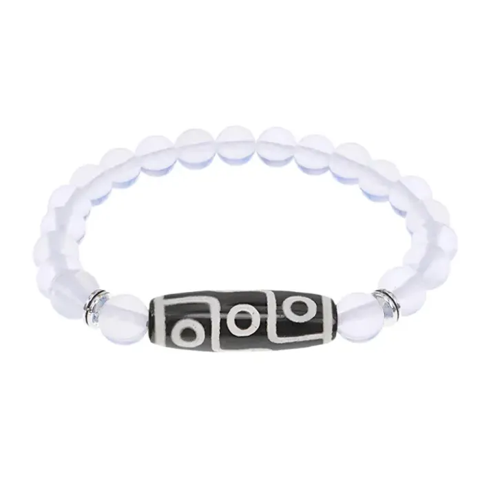 Стрейч-браслет из синтетического камня с тибетской бусиной Дзи, выполненный из натурального агата.