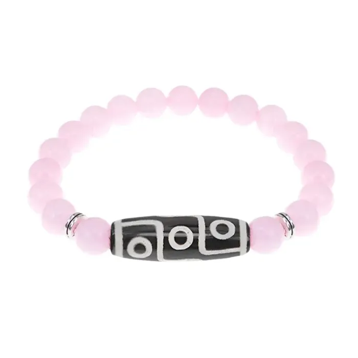 Браслет с 9-глазой бусиной Дзи и нат.камнем Розовый кварц BSDS8-15-15