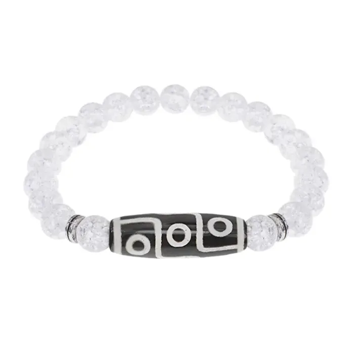 Стрейч-браслет из синтетического камня с тибетской бусиной Дзи из натурального агата.